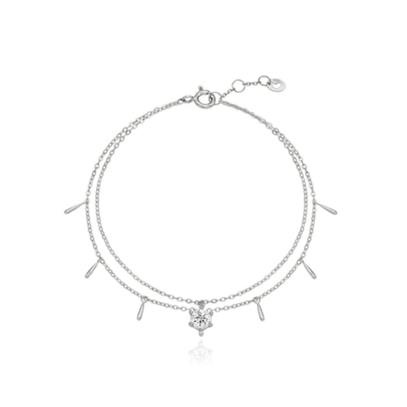 Tirr Lirr Stick Bar Round Cubic Silver-White Bracelet TBSSVW10671M