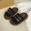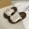 Женские пушистые тапочки на толстой подошве, новинка осени и зимы 2025, модные тапочки премиум-класса с пряжкой на ремешке, нескользящие хлопковые тапочки-моп для интернет-звезд