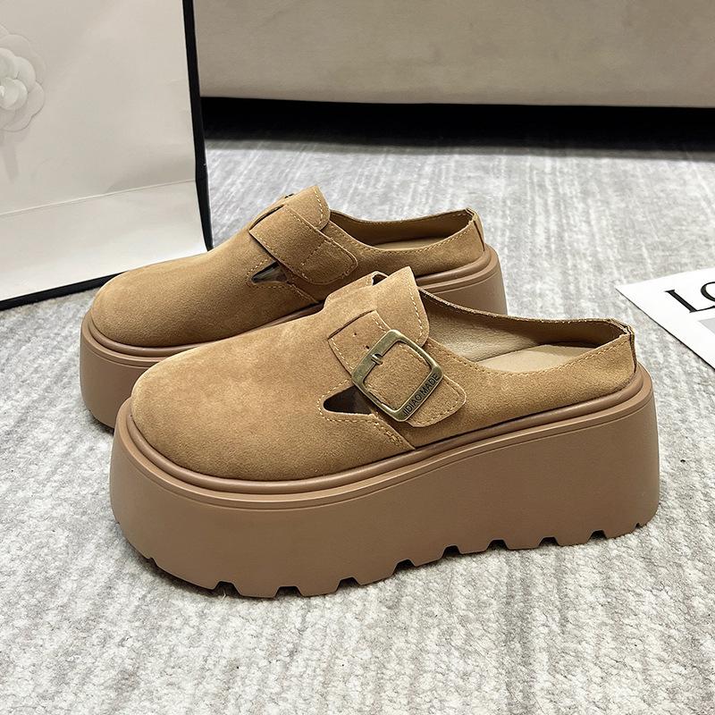 Ретро баотоу полу-шлепанцы женская верхняя одежда 2025 весна и осень новая корейская версия универсальные ленивые на толстой подошве маффин баотоу шлепанцы