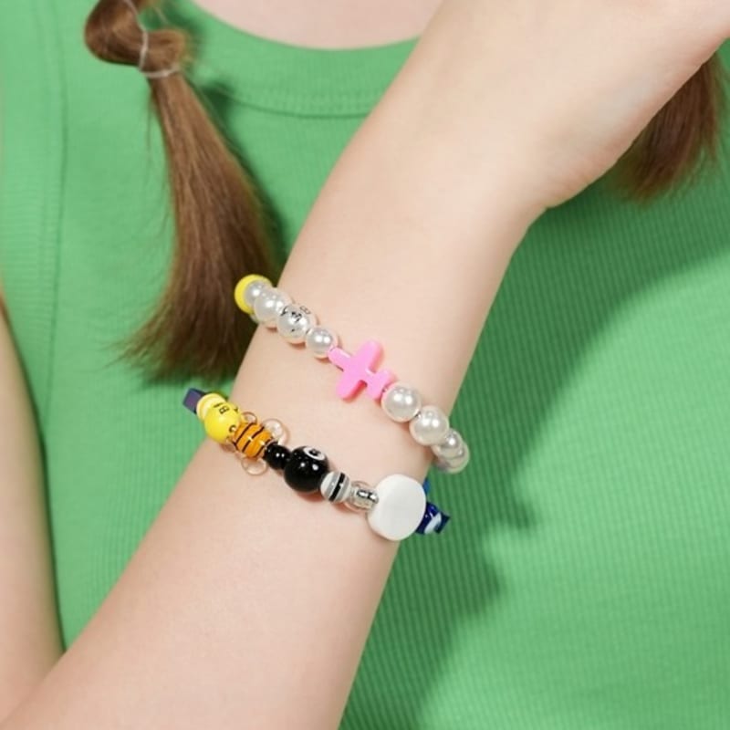 BONBEAU Цветной поп-мотив улыбка жемчуг Браслет Цветной акриловый мотив улыбка жемчужный шарик браслет