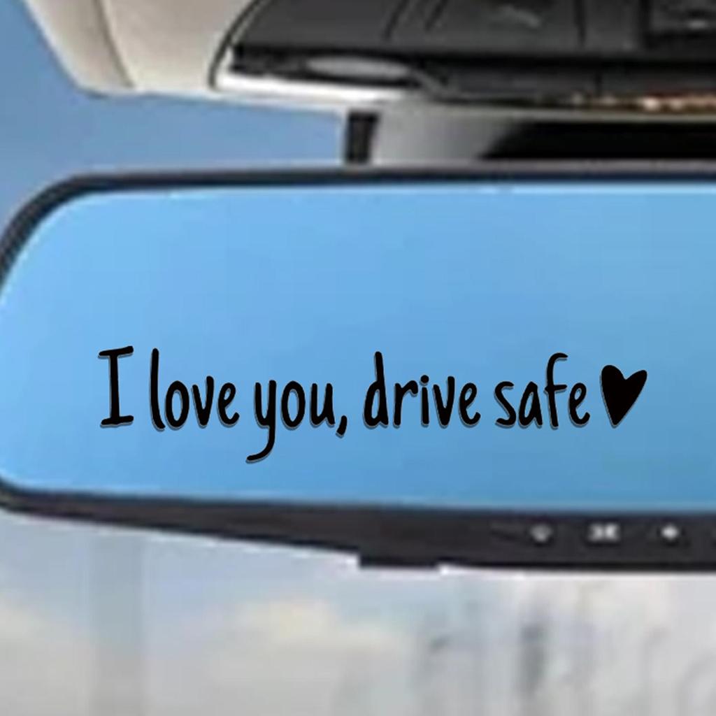 Rearview Mirror Decal Mirror Stickers for Cars I Love You Drive Safe Emblem Labels for Truck Bumper Vehicles Exterior Decor