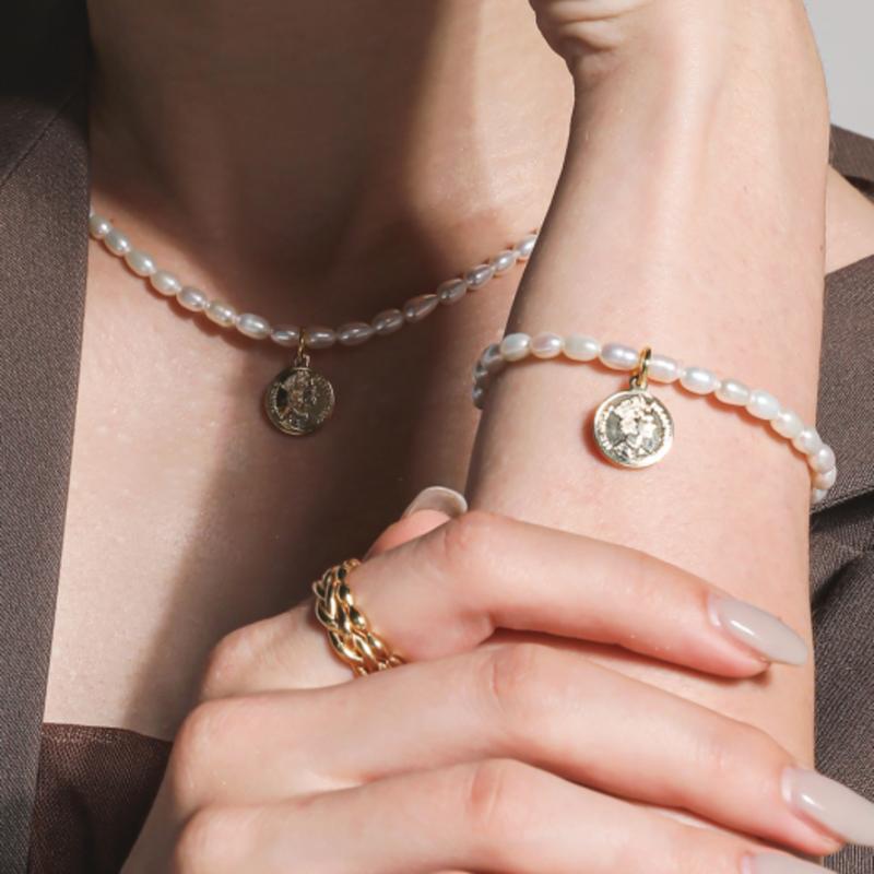J.Lauren Elizabeth Coin Pendant Pearl Bracelet B0967 — купить товар онлайн с бесплатной доставкой по всему миру!