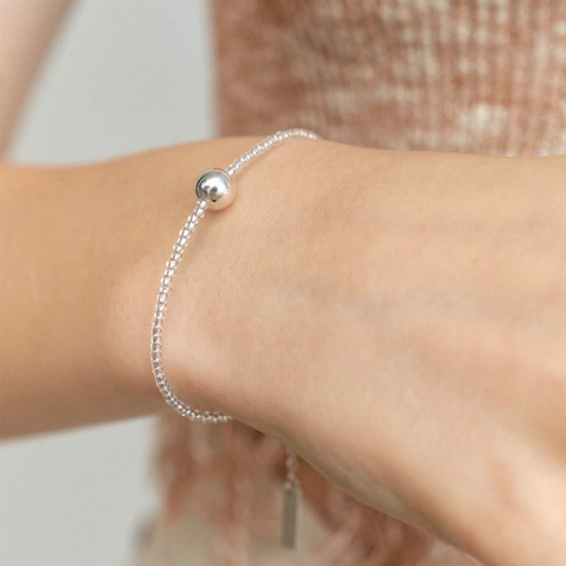 leeENoir Silver Ball Clear Beads Bracelet