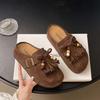 Женские полутапочки с кисточками в стиле ретро, новинка осени 2025 года, на плоской подошве, ленивые, с ремешком с пряжкой, матовые тапочки с бисером