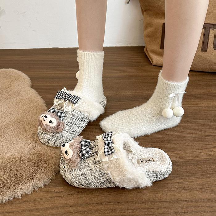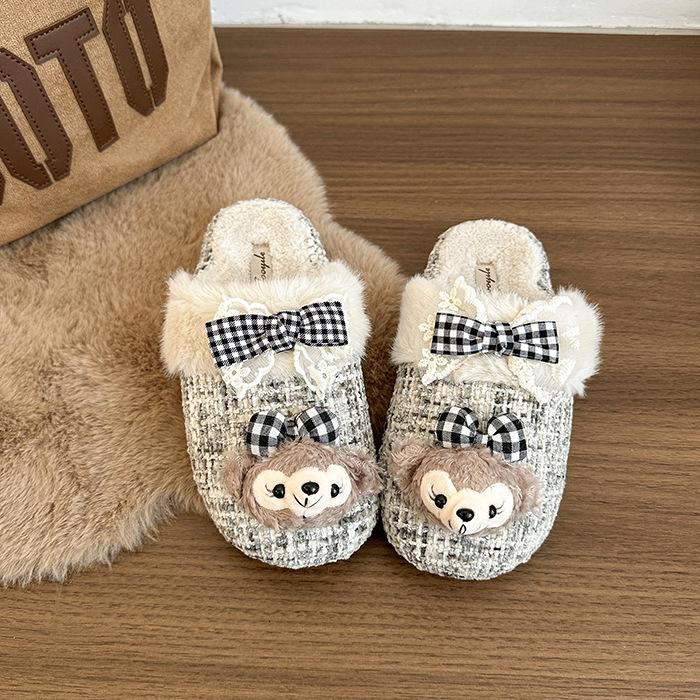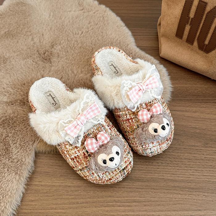 Шлепанцы для девочек Shirley Rose из хлопкового вельвета, повседневные, осенне-зимние, милые мультяшные, с теплым мешком на голову, пушистые шлепанцы