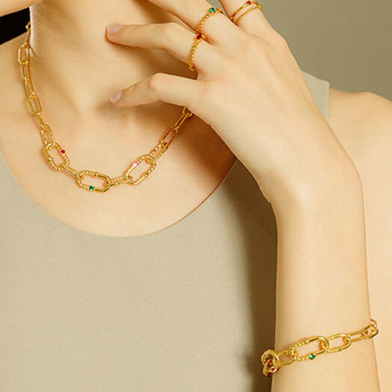 ozel Silver925 Ellipse CZ Chain Bracelet PS019B