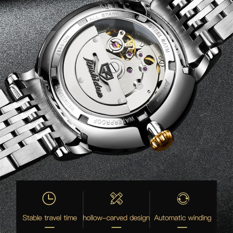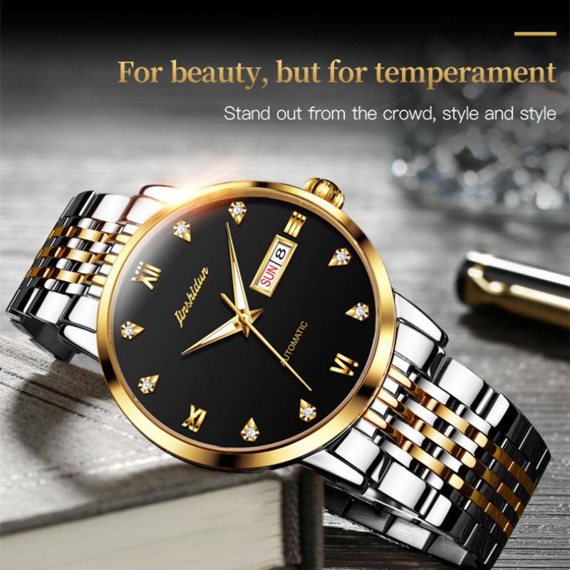 JINSHIDUN Новые деловые и развлекательные мужские часы Автоматические механические часы Модные бриллиантовые водонепроницаемые светящиеся мужские часы высокого класса