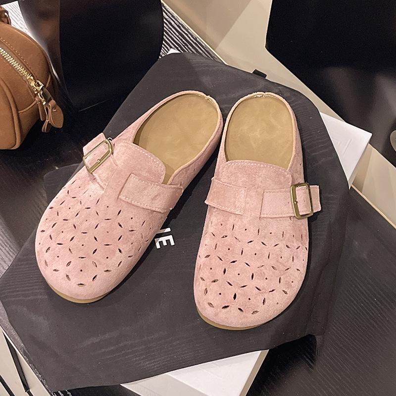 Женские шлепанцы Baotou 2025 лето новая имитация коровьей кожи полые туфли модные и удобные шлепанцы на плоской подошве