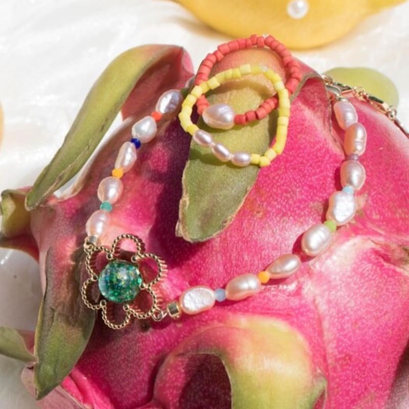luvinball Beads&Pearl Bracelet,Ring SET
