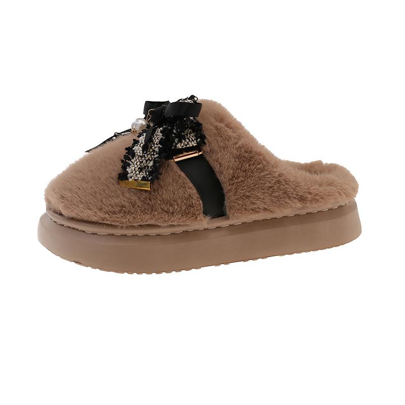 2025 зима новая джинсовая сумка с плюшевым бантом, домашние тапочки, женская домашняя мода, верхняя одежда, нескользящая хлопковая швабра