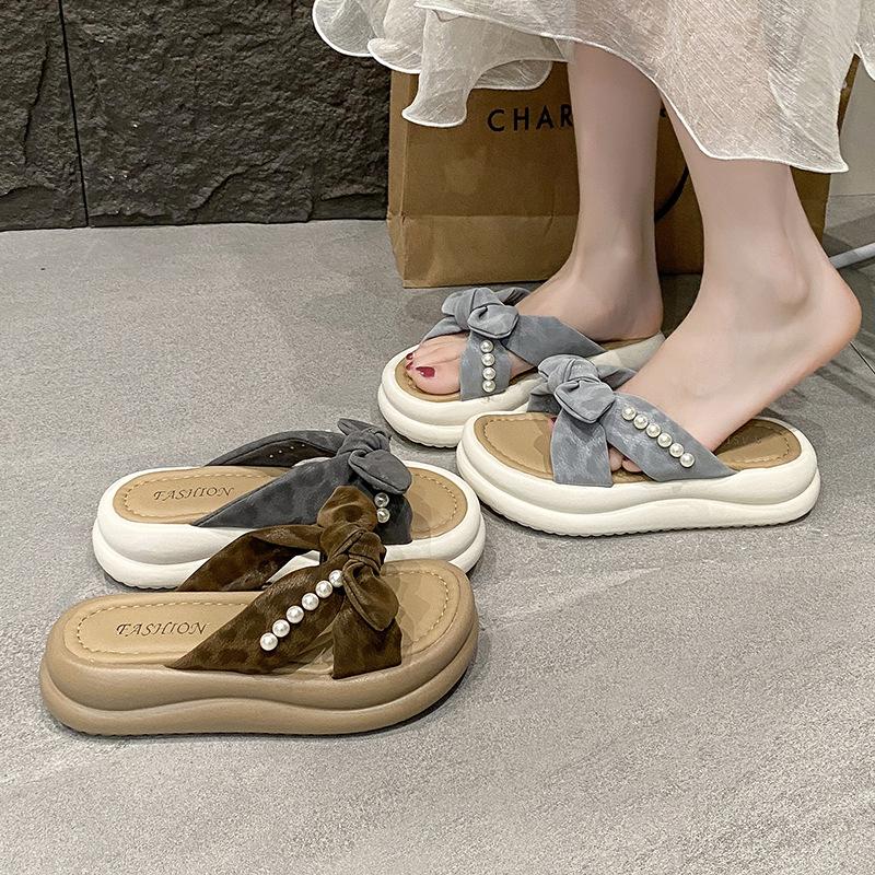 Французский стиль с юбкой крутые тапочки женская летняя одежда 2025 новый жемчужный плиссированный римский полубосоножки на толстой подошве