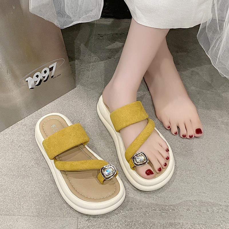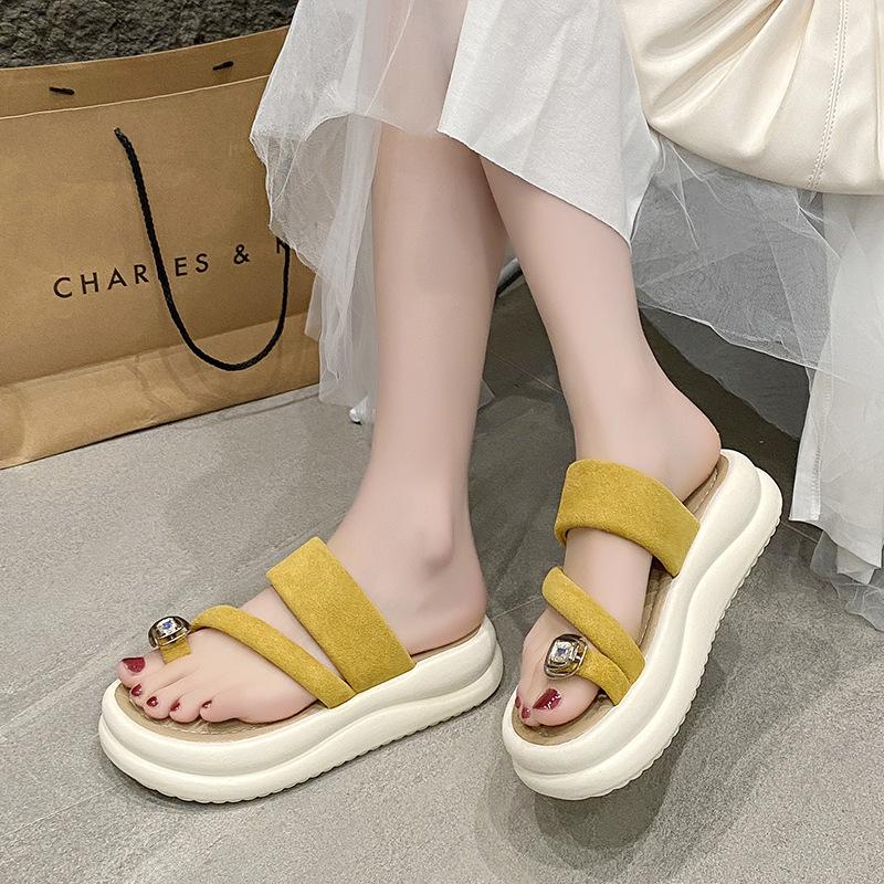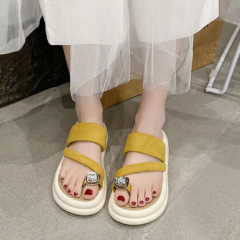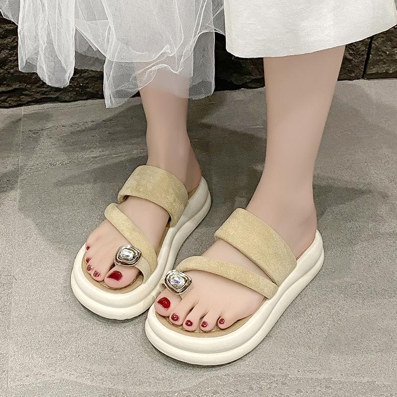 Сказочный ветрозащитный носок универсальные тапочки женские летняя одежда 2025 лето новые корейская версия однословные шлепанцы на плоской подошве пляжные сандалии