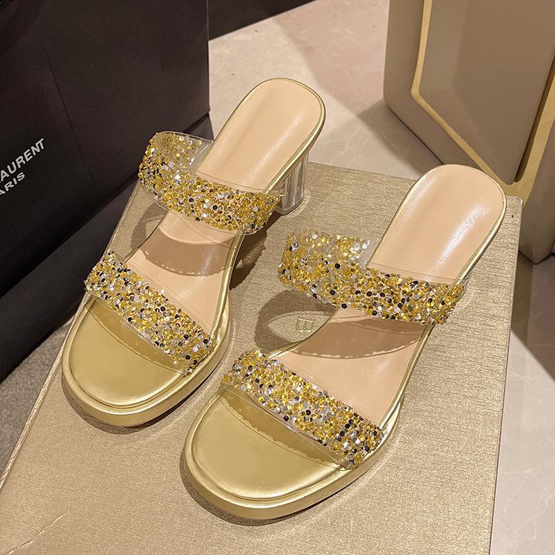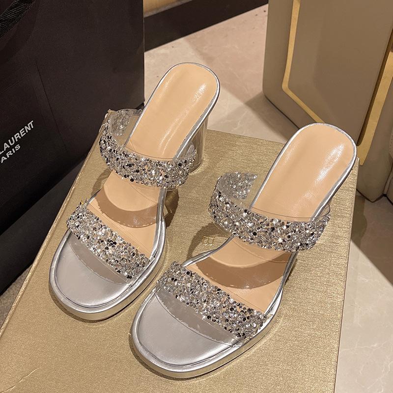 Прозрачные сандалии женские летние новые универсальные большого размера уличные тапочки кристальный темперамент водонепроницаемая платформа супер высокий каблук