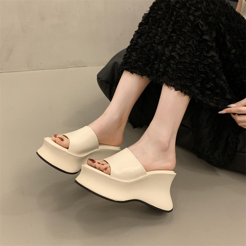 2025 лето новый европейский толстоподошвенный маленький человек в крутых тапочках женская мода удобные универсальные тапочки с увеличением роста женщины