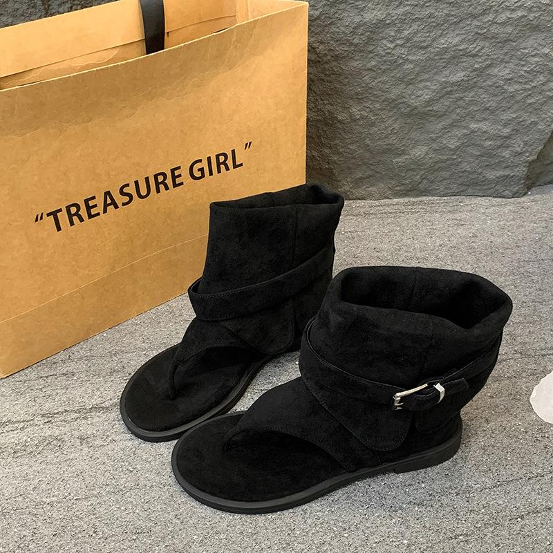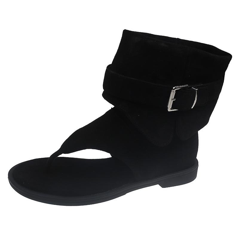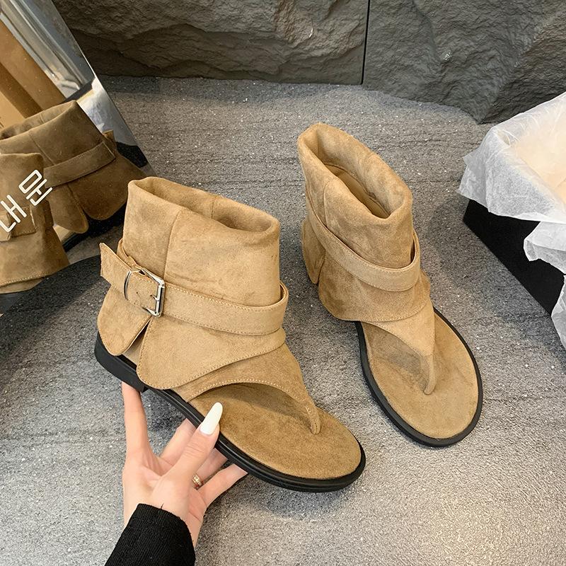 Французские сандалии с перемычкой женские лето 2025 новые на плоской подошве крутые ботинки брюки с рукавами короткие ботинки плоские шлепанцы