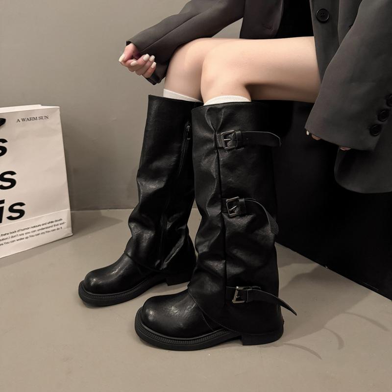 Нишевые ретро-сапоги на толстом каблуке средней высоты, ковбойские стековые сапоги в стиле вестерн, рыцарские сапоги, ранняя осень, ботинки «Мартин», французские женские сапоги