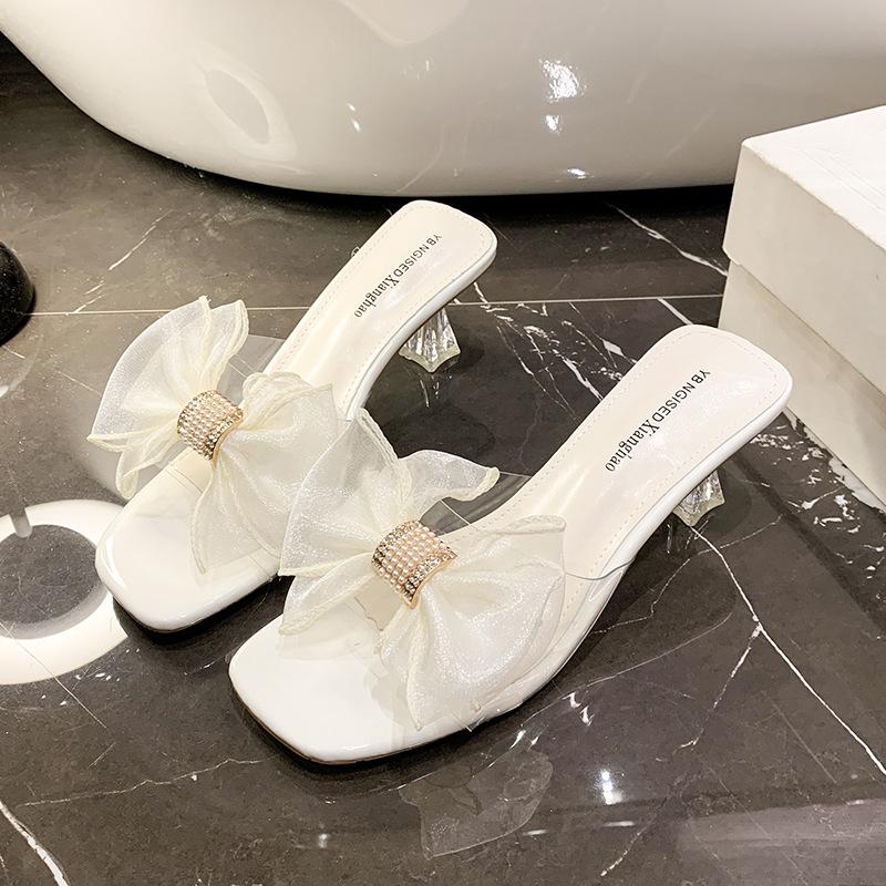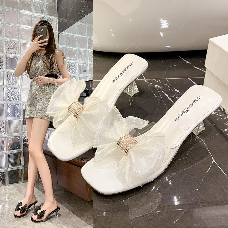 2025 new slippers female transparent bow summer new sexy fairy style high heels sandals stiletto heel spot
