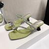 Rhinestone thin heel cover toe cool slippers women's 2025 summer new Korean version Internet celebrity bow fashion wear high heel slippers