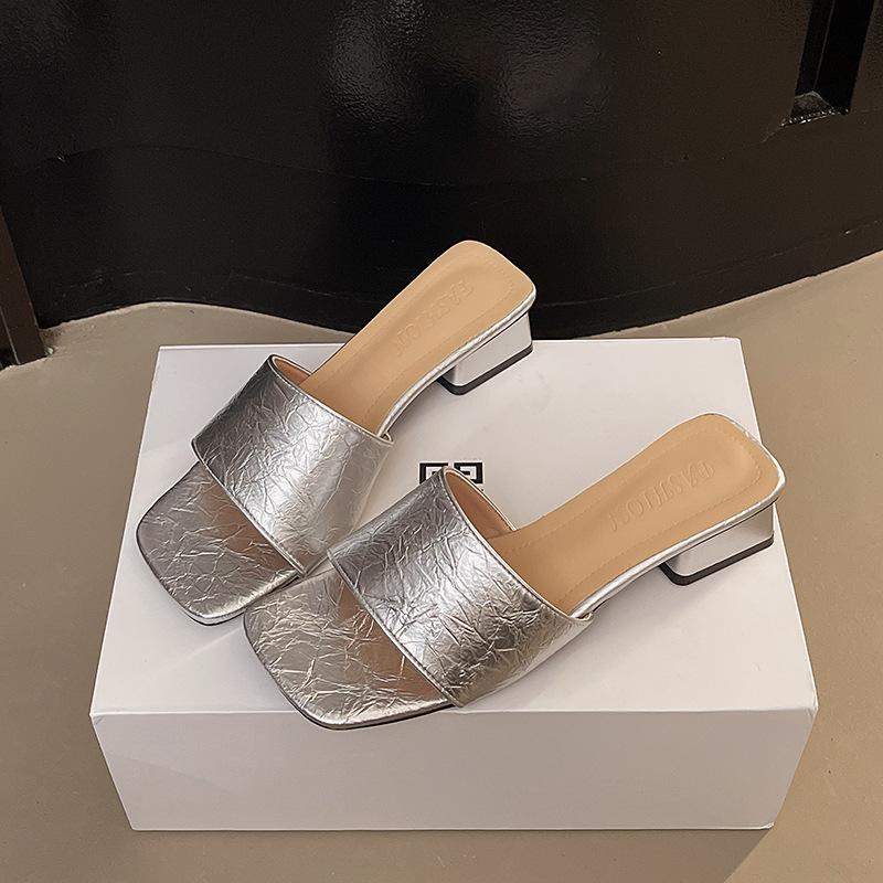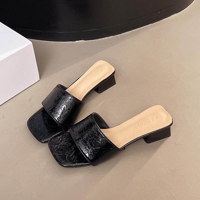 Большой размер толстый каблук крутые тапочки женские летние 2025 новая мода на выход однословные шлепанцы новый китайский стиль лето