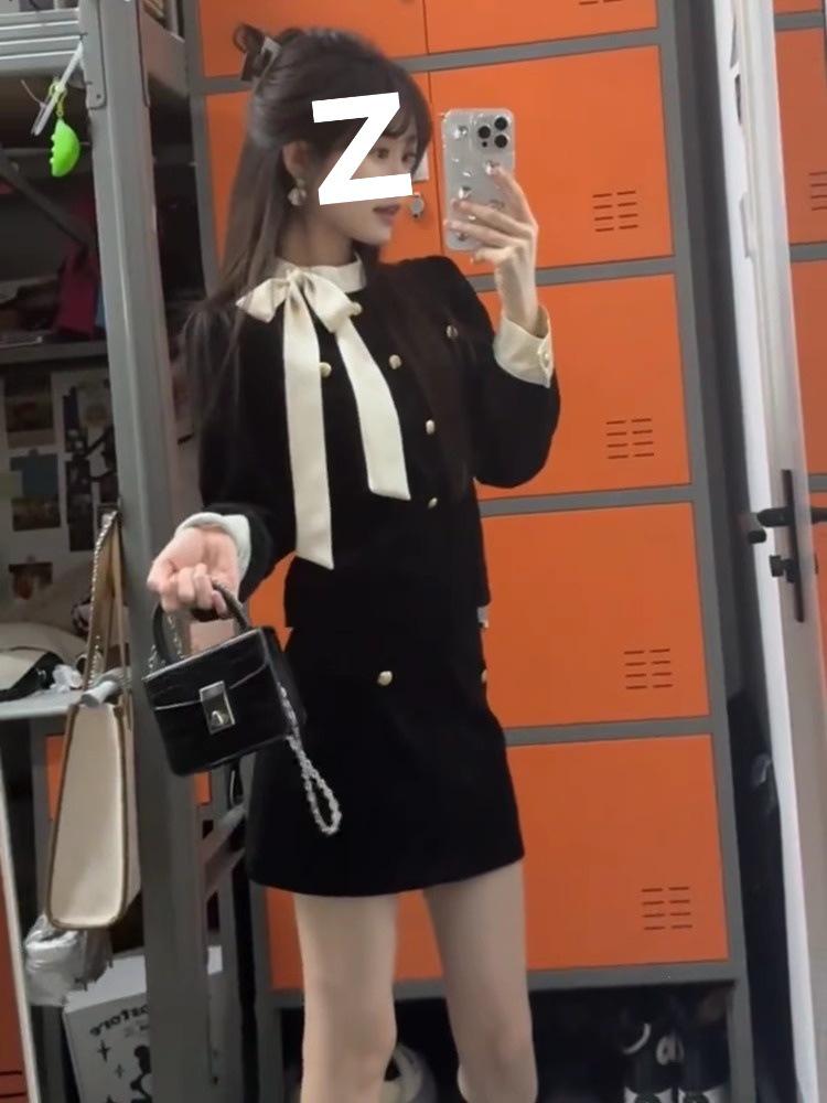 Женский комплект топ с французским бантом и облегающая мини-юбка на осень/зиму 2024