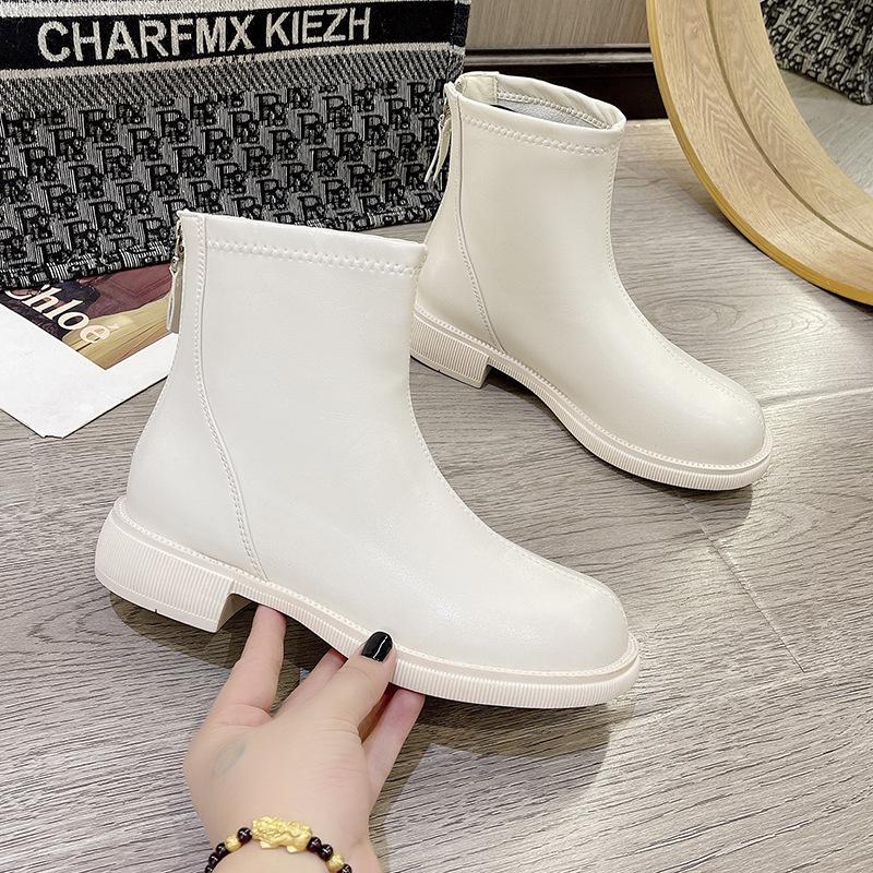 Женские полусапожки 2025 новые ботинки Мартина женские осенне-зимние челси ботинки на молнии сзади белые тонкие ботинки