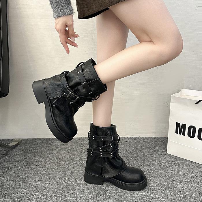 Ботильоны Maillard 2025 новая ретро круглая голова нишевый дизайн средние сапоги заклепки рыцарские сапоги