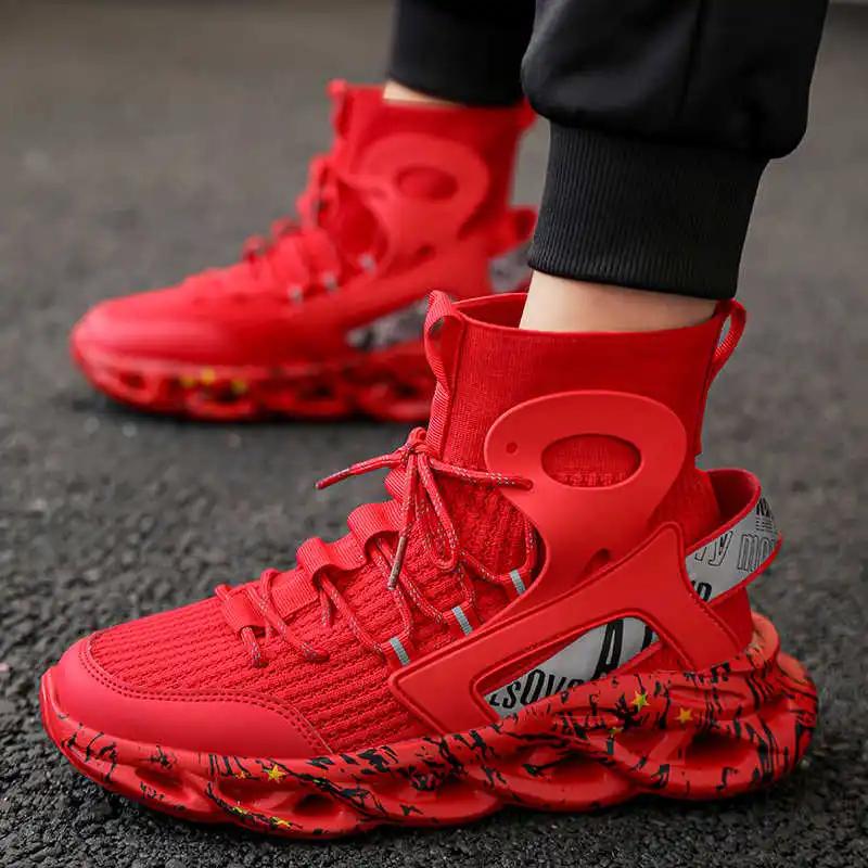 Туфли на толстом каблуке Увеличивают рост Мужские модные кроссовки Однотонные туфли Красные Теннисные Мужские Спортивные туфли Сникерсы Модные