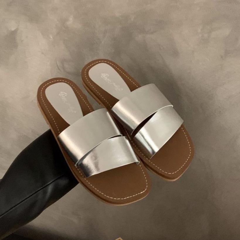 Интернет-знаменитость, шлепанцы на плоской подошве в французском стиле, женская обувь, носить 2025, новые летние, ретро, пляжные, приморские, римские сандалии