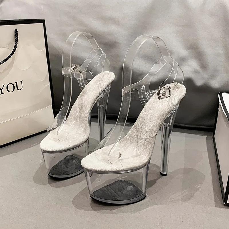 Модные Хрустальные Туфли для Стриптиза Прозрачная Обувь Женская 2025 Платформы Высокие Каблуки Сандалии Женские Прозрачные Сексуальные Свадебные Туфли Тапочки