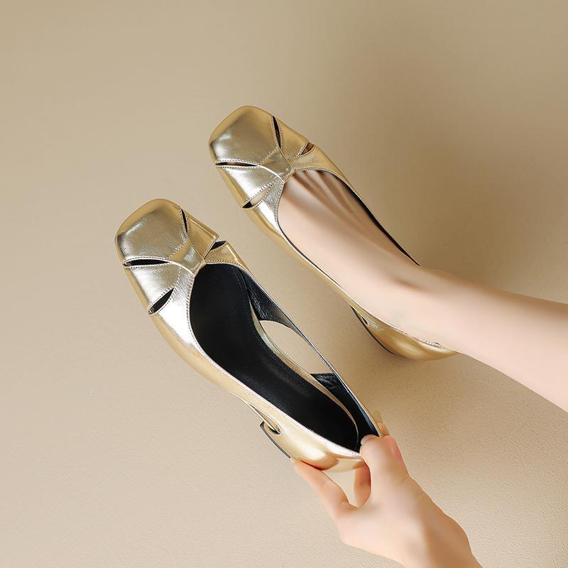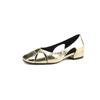 Французские элегантные золотые серебряные туфли-лодочки женские на низком каблуке нескользящие с квадратным носком весна и лето 2025 новая повседневная универсальная женская обувь