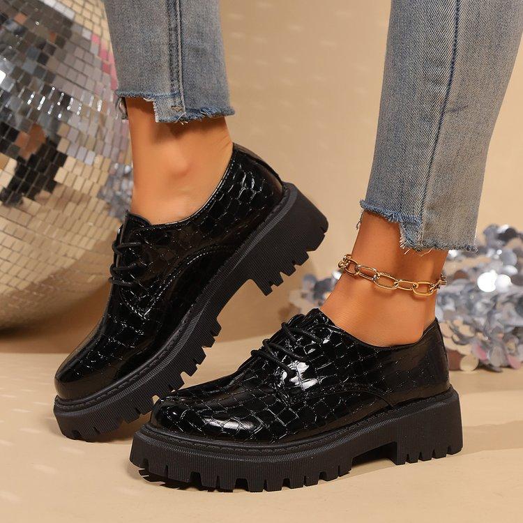 Модные женские однотонные оксфорды на массивной платформе, модные туфли из лакированной кожи на шнуровке, женские туфли-лоферы с круглым носком, черные, больших размеров