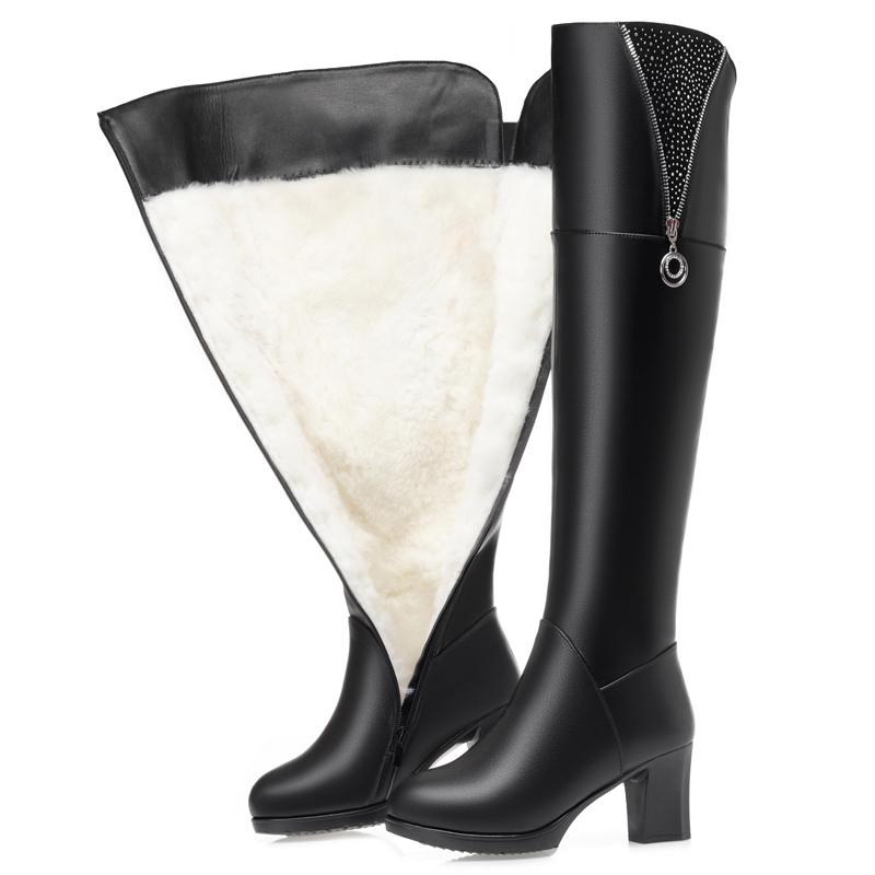 Модные женские ботфорты AIYUQI Новые зимние женские ботфорты выше колена Натуральная кожа Большой размер Шерсть Теплые Высокий каблук Женские сапоги