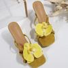 Мода Модный дизайн Цветы Зажим Узкая лента Квадратный носок Тонкий высокий каблук Шлепанцы Женские тапочки Сандалии Уличная обувь для вечеринок