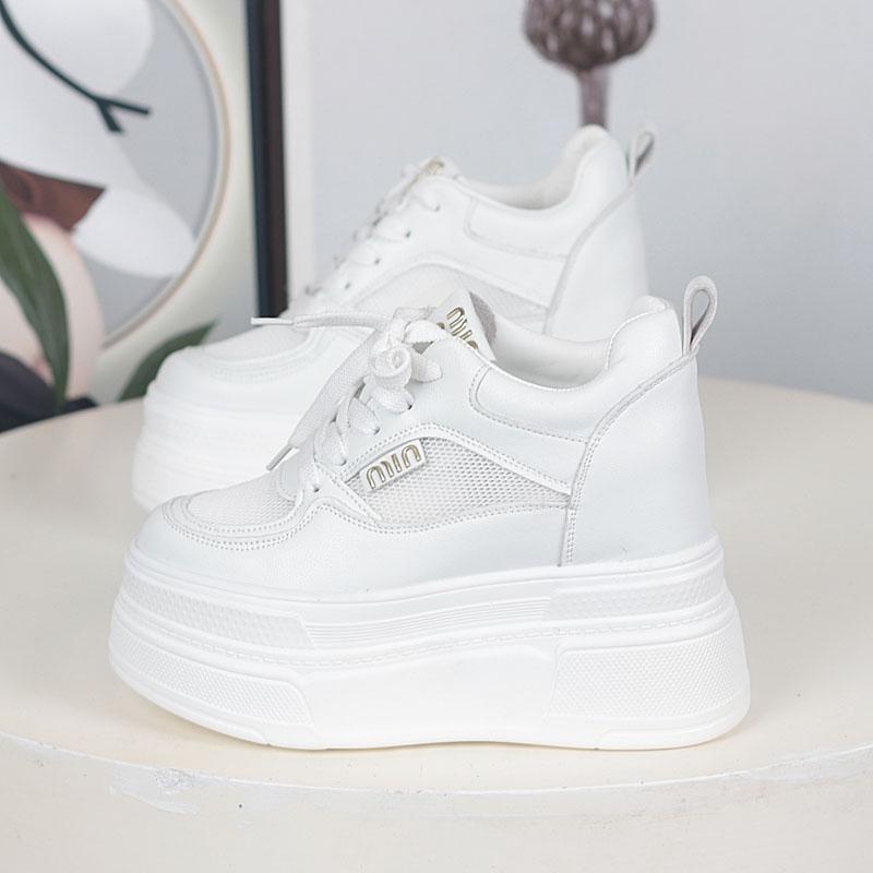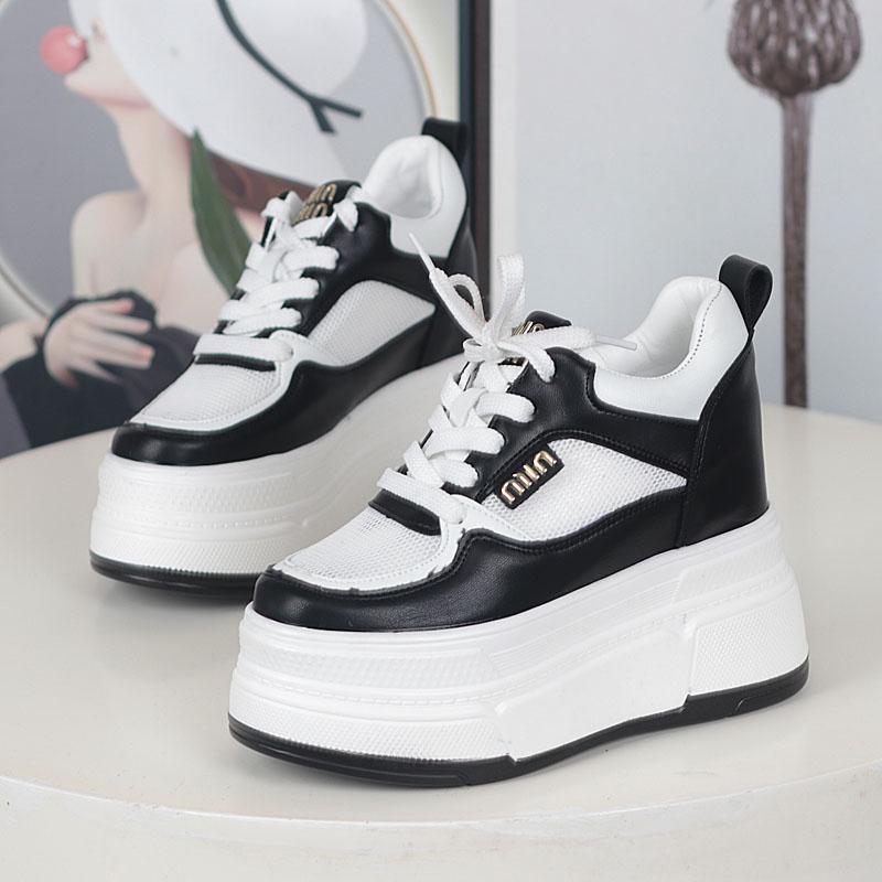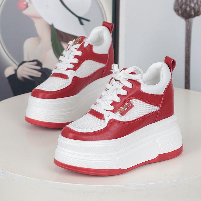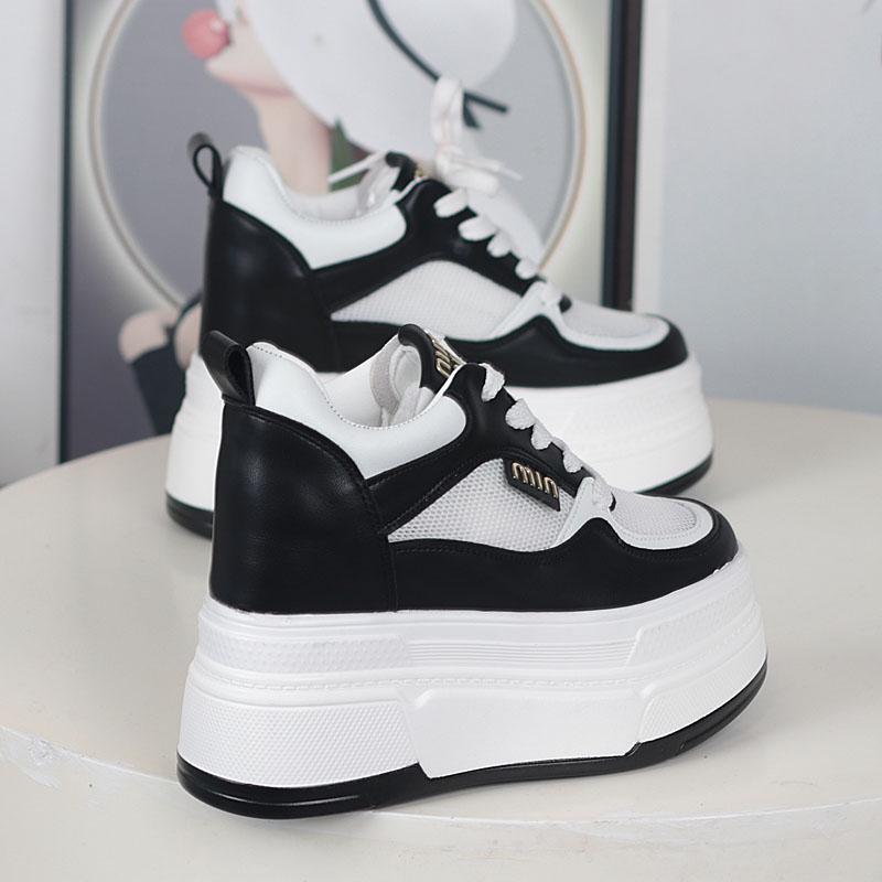 Мода 12 см Женская повседневная обувь для ходьбы Лето Осень На шнуровке Кожаные Высококачественные кроссовки Модные женские кроссовки на толстой подошве