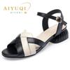 Модные сандалии AIYUQI Женские Натуральная кожа 2025 Новые Летние Женские Сандалии Римские Колорблок Открытый Носок Большой Размер 41 42 43 Сандалии Женские