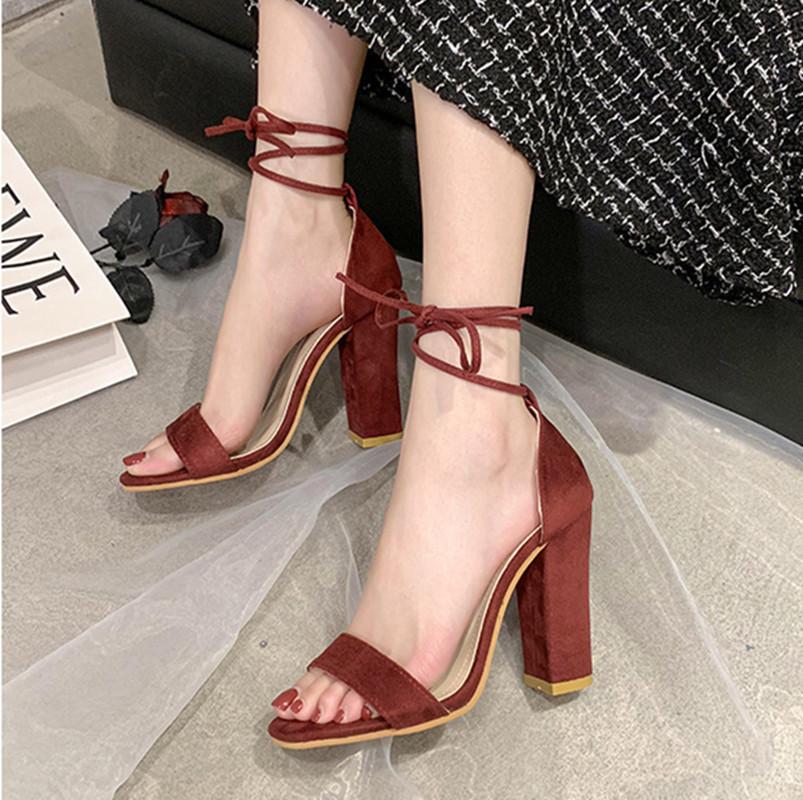 Модные новые босоножки на высоком каблуке Женские Большой размер 34-43 Модная летняя обувь Открытый носок Пряжка на щиколотке Однотонные босоножки на каблуке Повседневные сандалии Sandalias