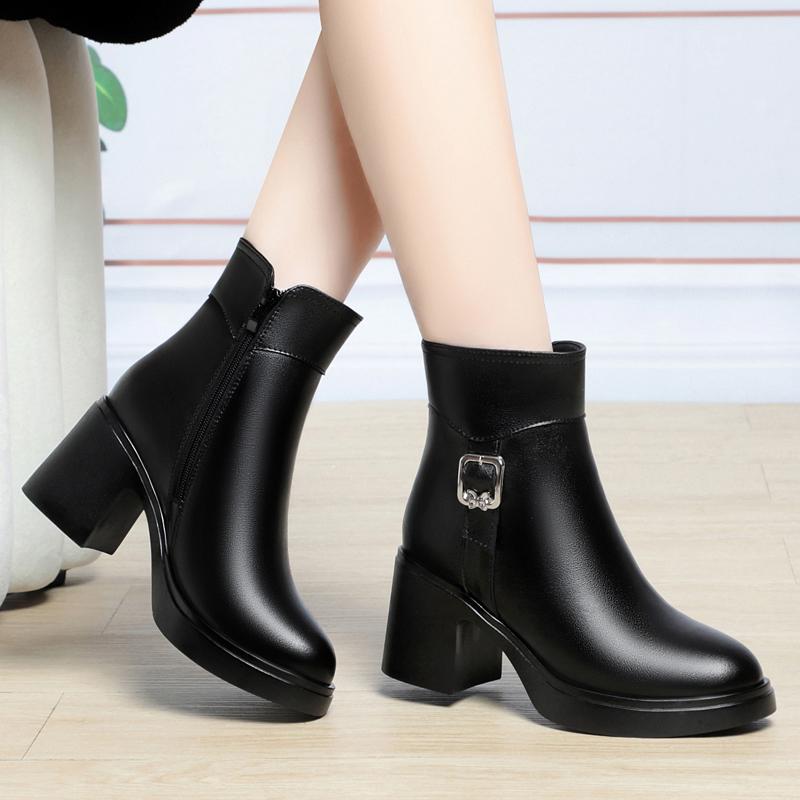Модная женская зимняя обувь ботинки Aiyuqi 2025 Новая мода Ботильоны на высоком каблуке Женские Ботинки из натуральной шерсти теплые Женские