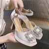 Fashion Hot Selling 2025 Summer Baotou Sandals Women's French Retro Square Headed Water Diamond Buckle Back Hollow Thick Heel Sandals