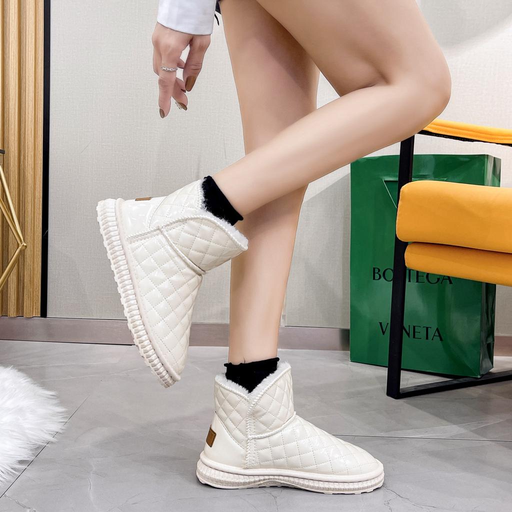 Модные зимние водонепроницаемые теплые женские ботильоны для снега, модные милые бежевые уличные утолщенные плюшевые на платформе, хлопковые туфли