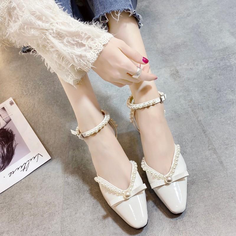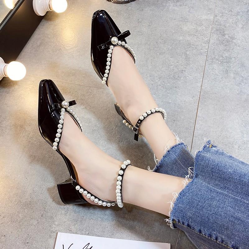 Модная женская обувь Туфли на высоком каблуке Сексуальные туфли-лодочки Свадебная обувь невесты Жемчужная пряжка Толстый высокий каблук Острый носок для лета 2025 Женские сандалии