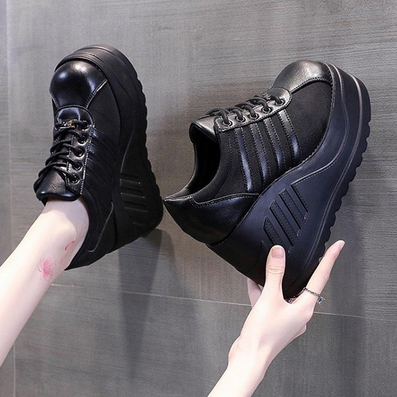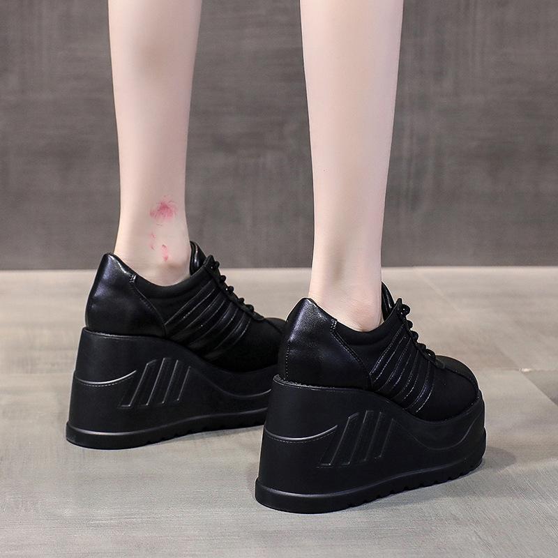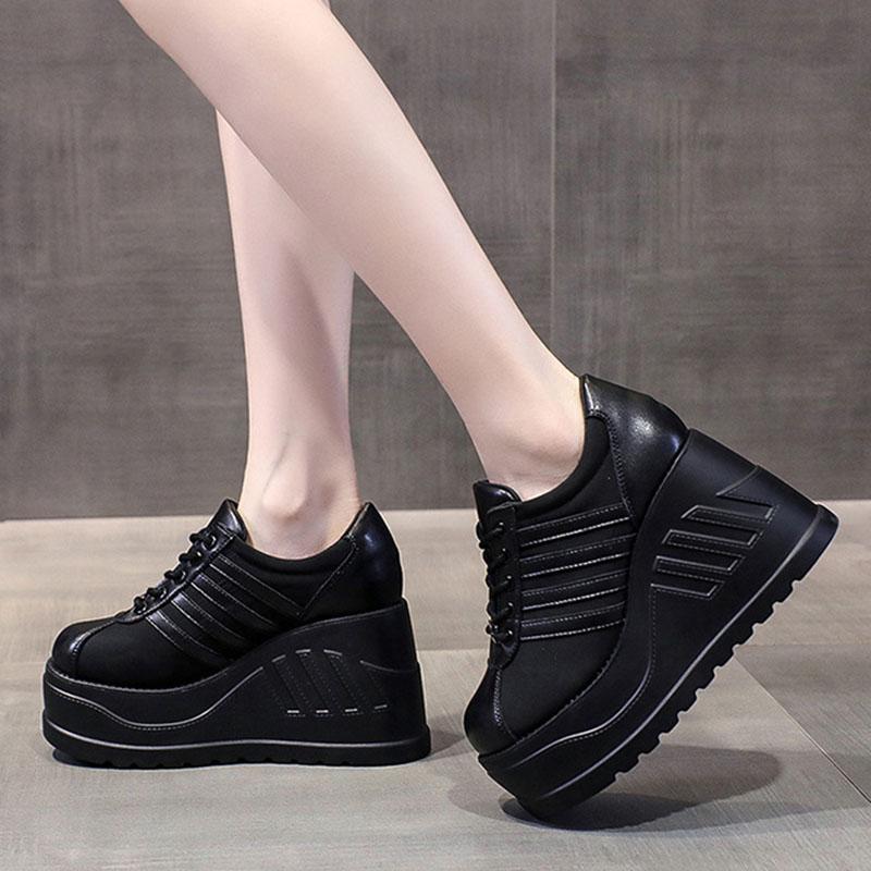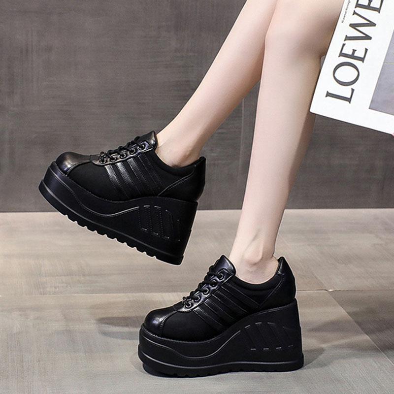 Модная женская обувь на платформе Черные большого размера Кроссовки на танкетке 10 см Высокий каблук На шнуровке Модные готические туфли-лодочки для женщин Панк Теннис