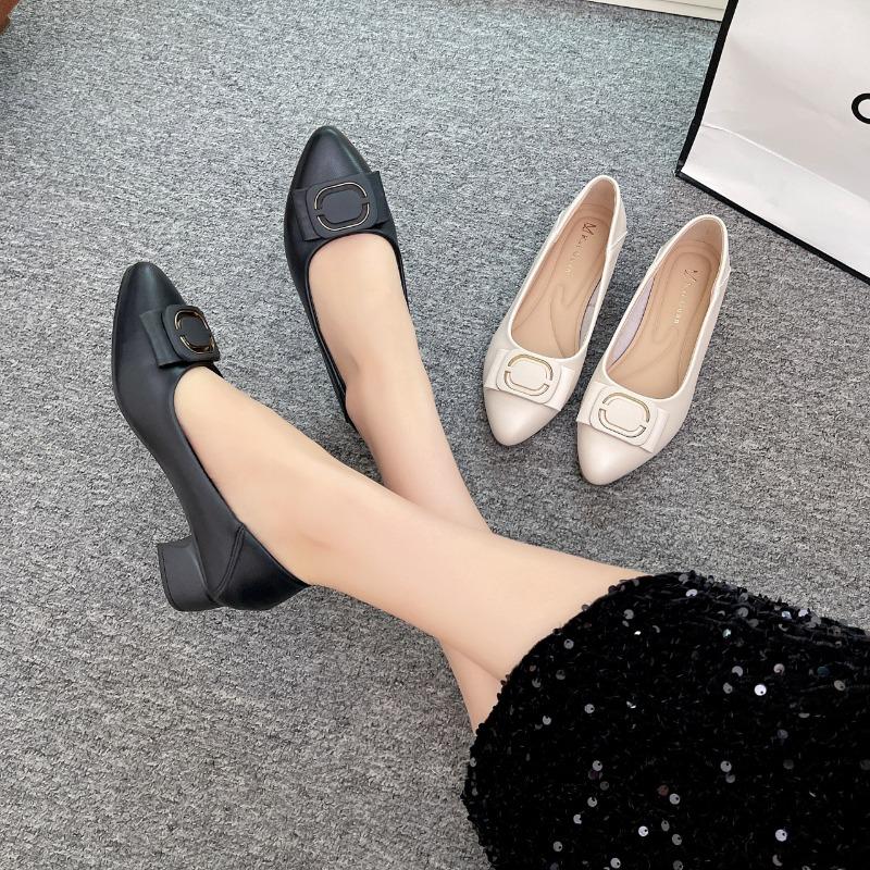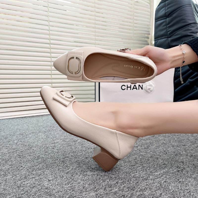 Мода 2025 Новая мода и универсальные туфли-лодочки с круглым носком, блочным каблуком и маленьким вырезом, весенне-осенние повседневные женские кожаные туфли на мягкой подошве