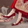 Мода Comemore Красный Высокий Каблук Китайский Стиль Свадебные Свадебные Туфли Женские 2024 Расшитые Бисером Женские Туфли Острый Носок Туфли-Лодочки Модные Туфли на Каблуке 34