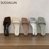 Fashion SUOJIALUN 2025 Summer New Women Slipper Fashion Med Wedge Heel Slip On Slides Shoes Ladies Elegant Outdoor Dress Flip Flop Shoes