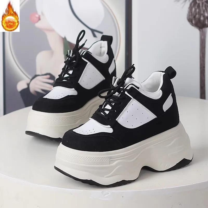 Мода 12 см Микрофибра Синтетическая кожа Вулканизированные Массивные Кроссовки Платформа Танкетка Осень Весна Ботильоны до щиколотки Женские Вулканизированные