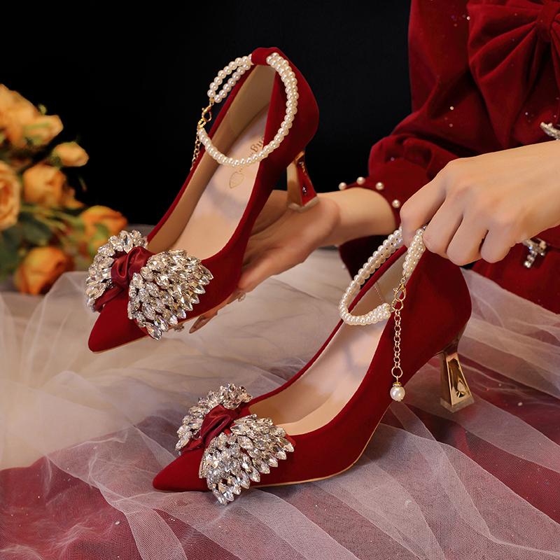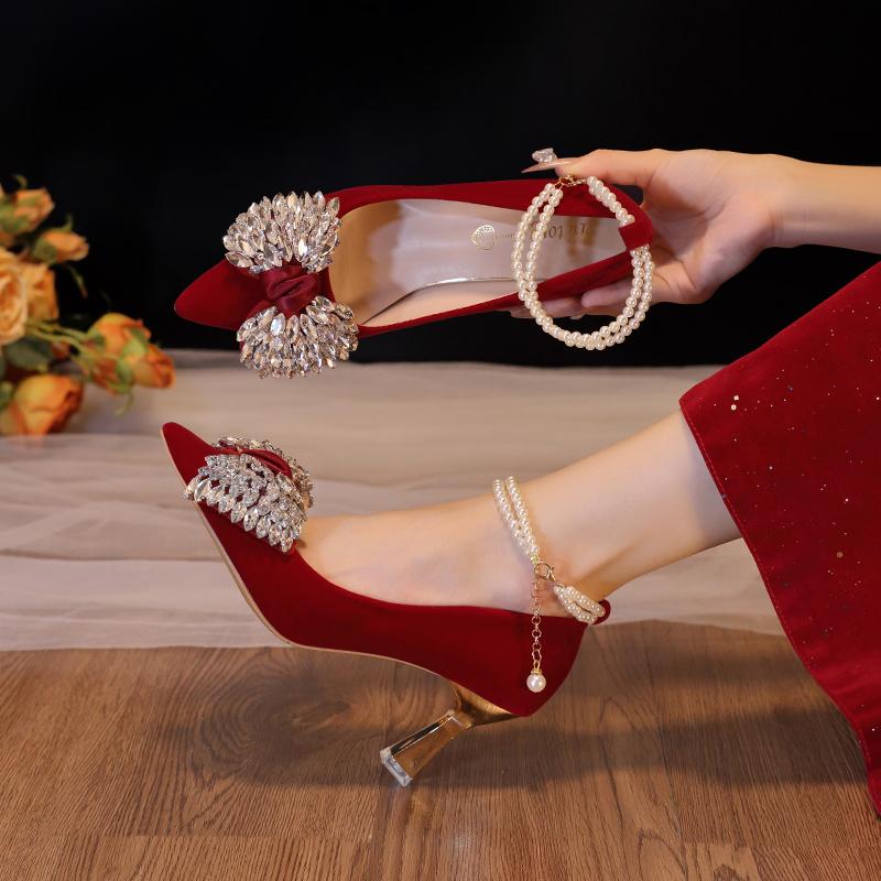 Модная красная свадебная обувь женская 2025 новая на высоких каблуках