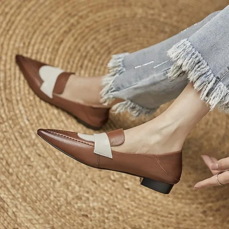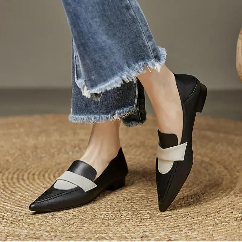 Модная женская обувь на плоской подошве с острым носком, низким каблуком, лоферы, модный дизайнерский тренд, новая элегантная обувь для платья на высоком каблуке с мягкой подошвой