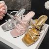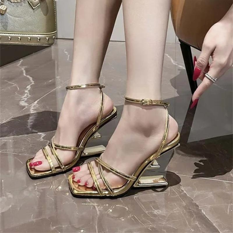 Модный новый дизайн женской обуви, узкий ремешок, высокие каблуки, роскошные модные женские сандалии, лето, квадратный носок, ремешок с пряжкой, банкетная женская обувь