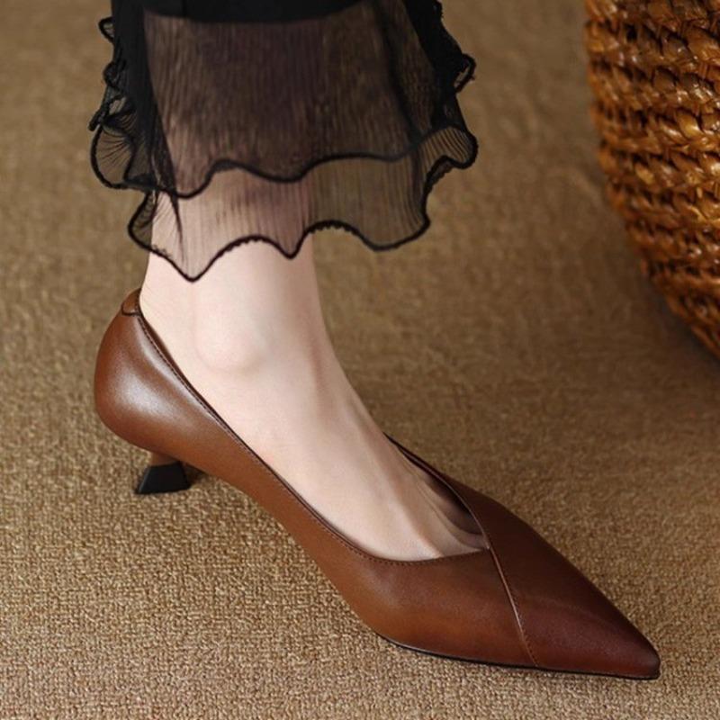Мода Мода Классические Женские Туфли-Лодочки Заостренный Носок Одинарные Туфли Натуральная Кожа Офисная Обувь Летние Элегантные Женские Легкие Высокие Каблуки