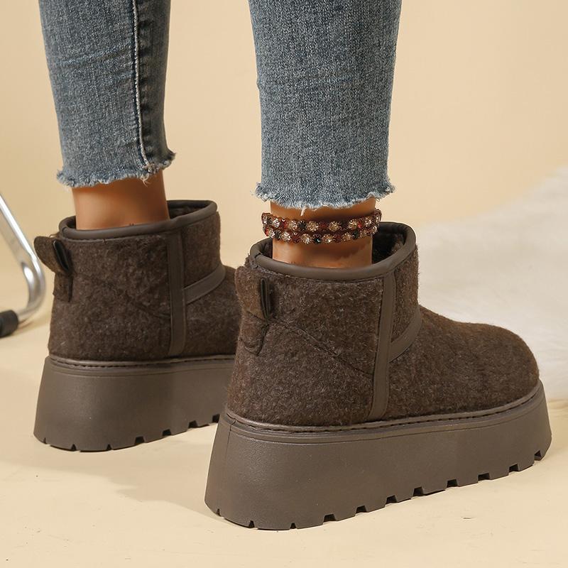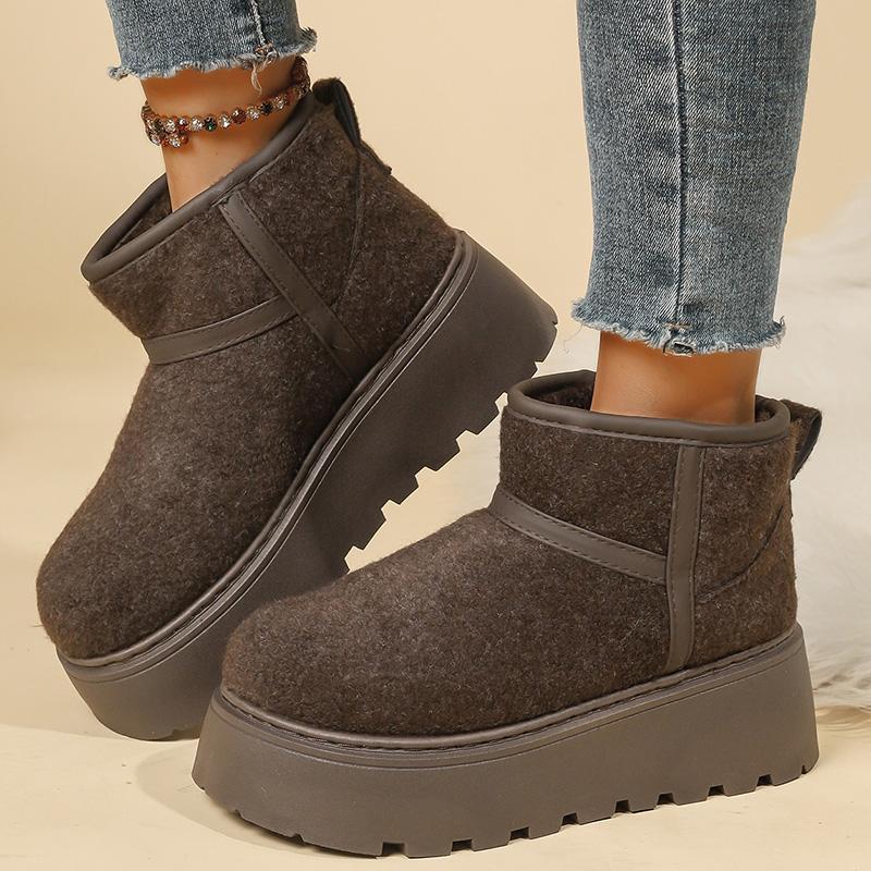Модные нескользящие ботинки на массивной платформе для женщин, зимние ботильоны до щиколотки с толстой подошвой и короткой плюшевой подкладкой, женские ботильоны из искусственной замши, слипоны